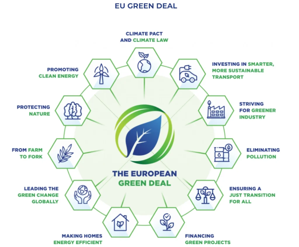 The European Green Deal is a strategy to deliver a modern, resource-efficient, and competitive economy. Announced back in 2019, the deal plans: